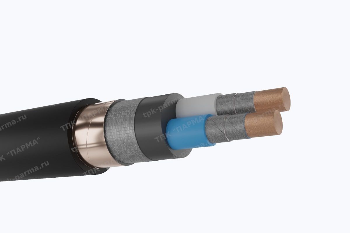 1. Пять секторных многопроволочных токопроводящих жил из меди с площадью номинального поперечного сечения 150 мм2, соответствующих 2 классу по ГОСТ 22483-2012.