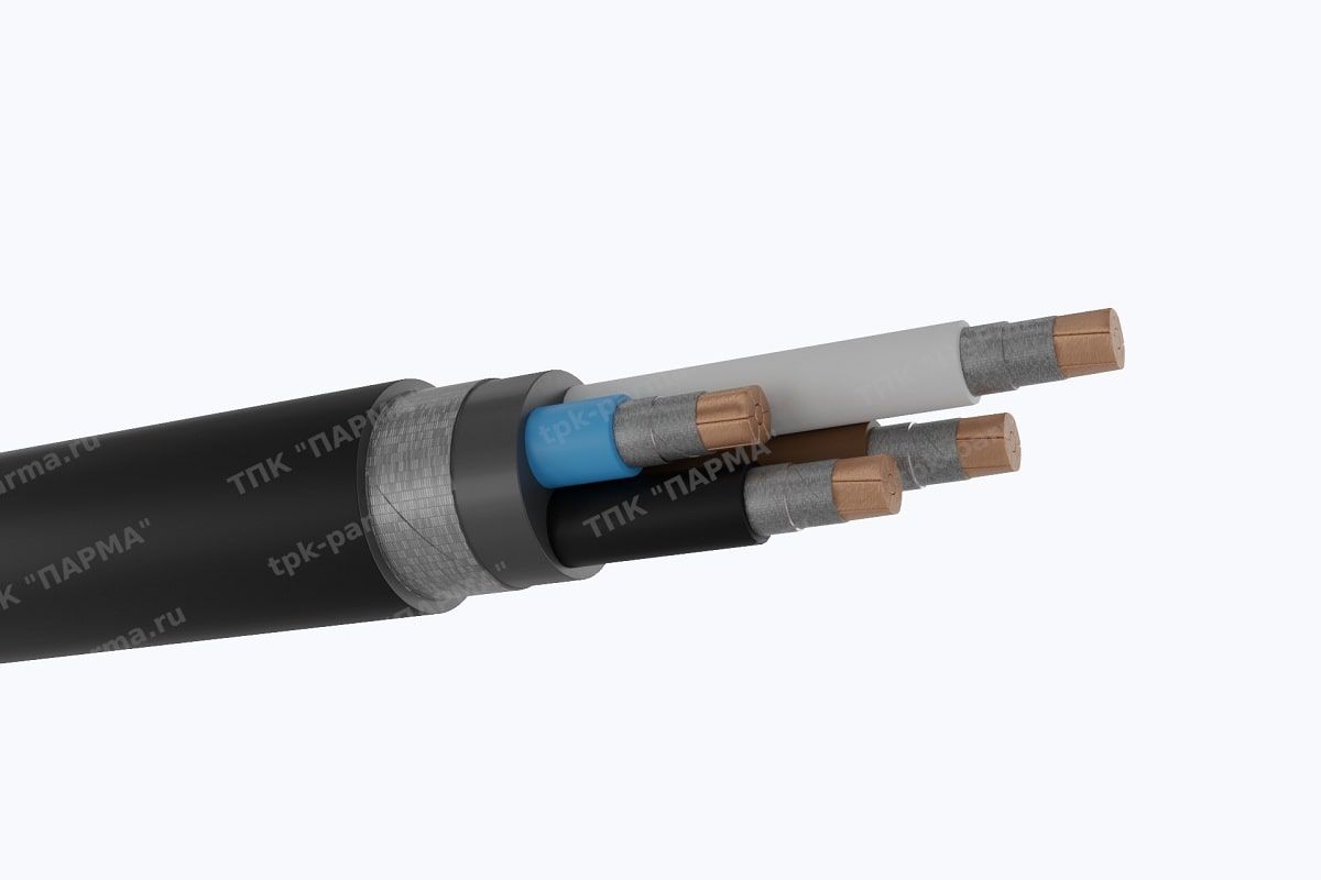 1. Пять секторных многопроволочных токопроводящих жил из меди с площадью номинального поперечного сечения 95 мм2, соответствующих 2 классу по ГОСТ 22483-2012.